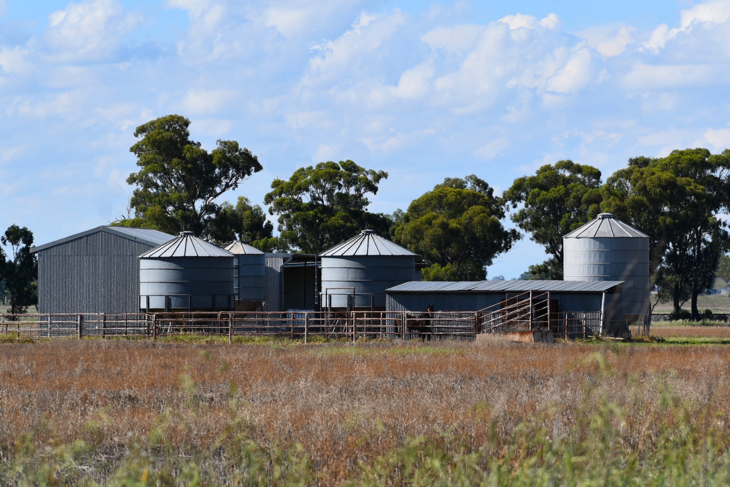 Billabong Park already has two large steel sheds in good condition: a 12m x 18m machinery / storage shed, with sliding door access to the 12m x 12m concrete floor lock-up section and a 12m x 9m hay open fronted hay shed. There are also 3 smaller and 1 larger silo, simple steel cattle yards and a fully enclosed stable with separate concrete floor tack/ storage room.